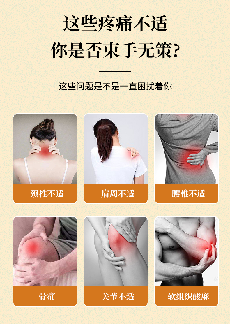 适用于颈肩腰腿疼痛,颈椎、肩周、腰椎、腰肌劳损、跌打损伤等引起不适的亚健康人群。